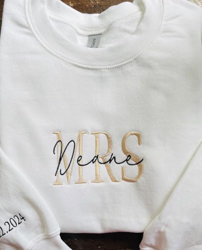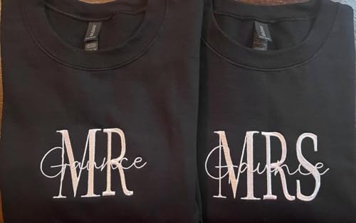 HOT ! NAZENTI Custom Embroidered Mr & Mrs Sweatshirt & Hoodie, Personalized Couple Names, Custom Date On Sleeve, Engagement Gift