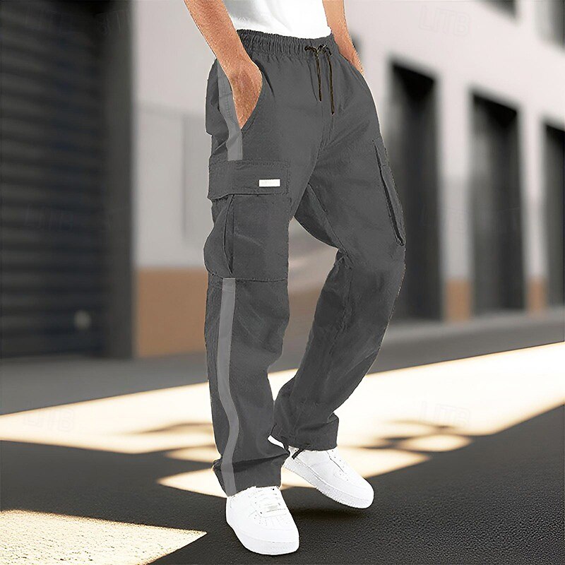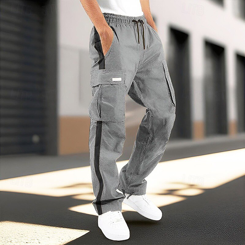 More information about Men's Cargo Pants Trousers Elastic Waist Drawstring Multi Pocket Plain Wearable Outdoor Daily Camping & Hiking Fashion Classic Black / Red Black-White