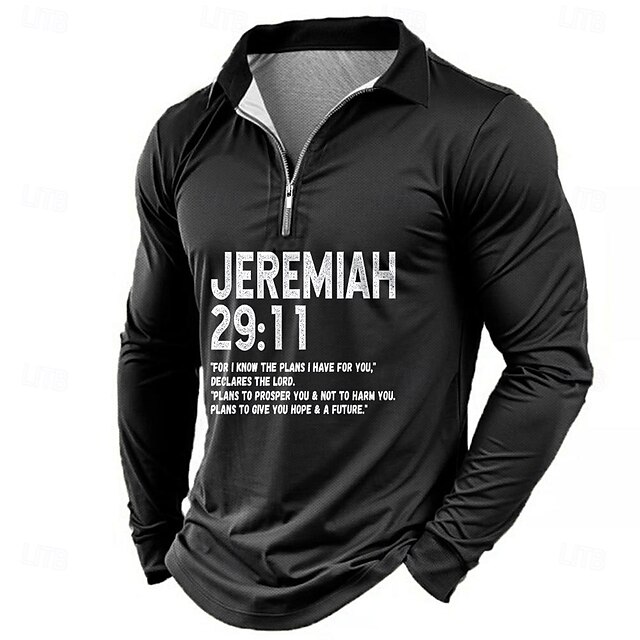HOT ! Men's Quarter-Zip Long Sleeve Graphic Top, Jeremiah 29:11 Inspirational Christian Bible Verse