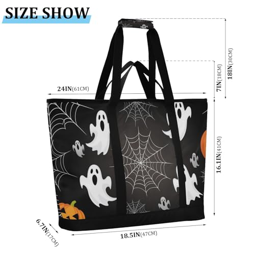 HOT ! Pumpkins Halloween Spirits Large Insulated Tote Bag for Grocery Shopping Reusable Tote Bags for Women Men, Cooler Bag with Zippered Top & Handles for Beach Picnic Travel