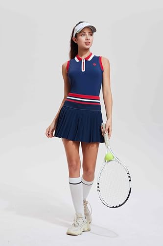 Tennis Skirt Sets for Women Color Block Golf Polo Two Piece Skirt Set Women 2 Piece Outfits with Shorts 2