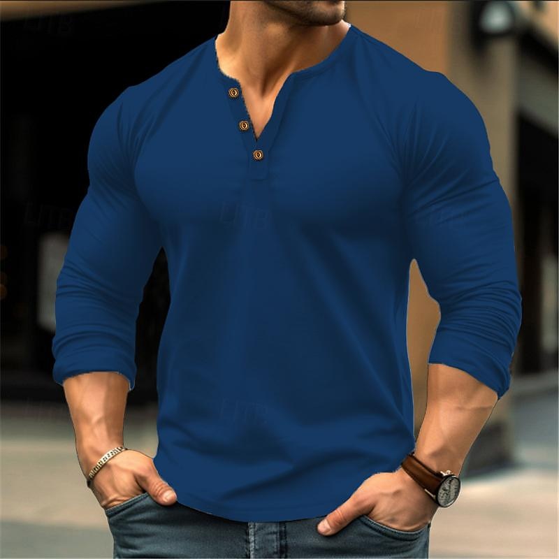 Men's Henley Shirt Tee Top Long Sleeve Shirt Plain Henley Street Vacation Long Sleeve Vintage Style Clothing Apparel Fashion Designer Basic 15