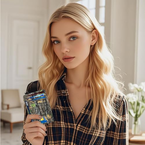 Ultra-Thin Front Pocket Wallet with Wrist Strap, RFID Blocking Security Pockets for Business Card Holder, PU Leather Secure Multi-slot Card Pocket, Camo Tree 4