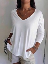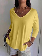 More information about Women's Blouse Plain Casual Long Sleeve V Neck Regular Tops Holiday Going out White Yellow Pink Light Blue Fall