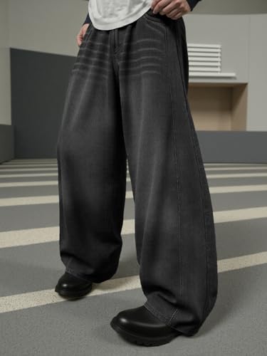 More information about Baggy Hip Hop Jeans for Men Wide Leg Skater Denim Pants Casual Loose Fit Long Trousers