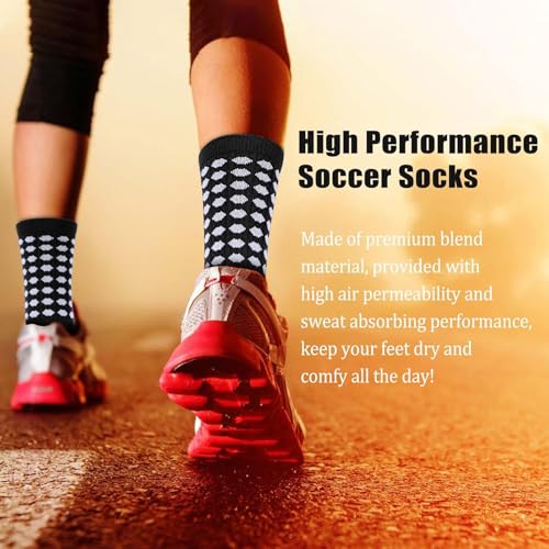 • Stretchy & Comfy to Wear: The soccer socks are 6.7 inches in socks tube, 8.7 inches in socks sole, high in elasticity, one size fits for men shoe size EU 39-45/US 6-11.5, suitable for most adults men women and teen boys