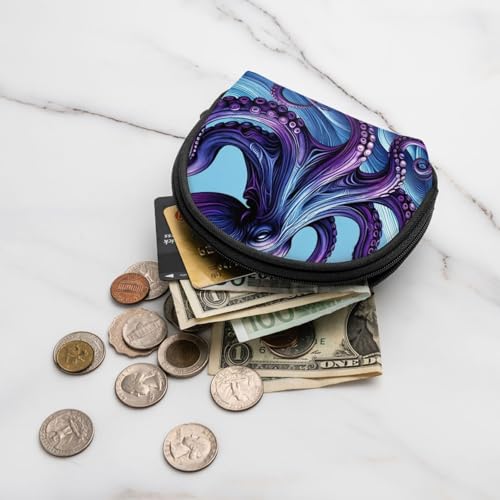 More information about Portable Coin Purse Inkfish-Wave-Sea Mini Zippered Money Pouch Card Holder