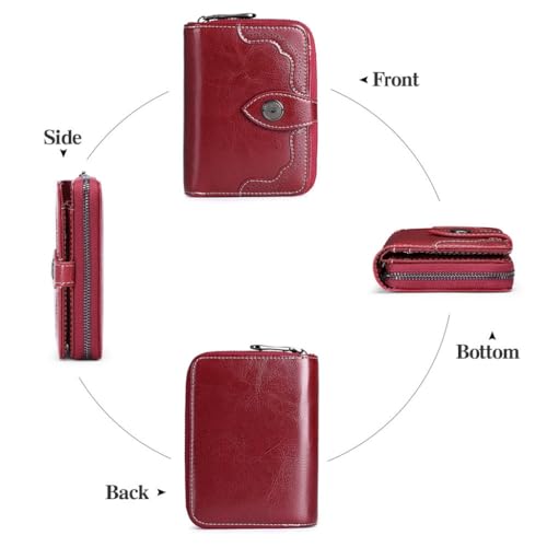 More information about Leather Women's Short Purse Two-fold Women's Zipper Vintage Oil Waxed Cowhide Money Clip