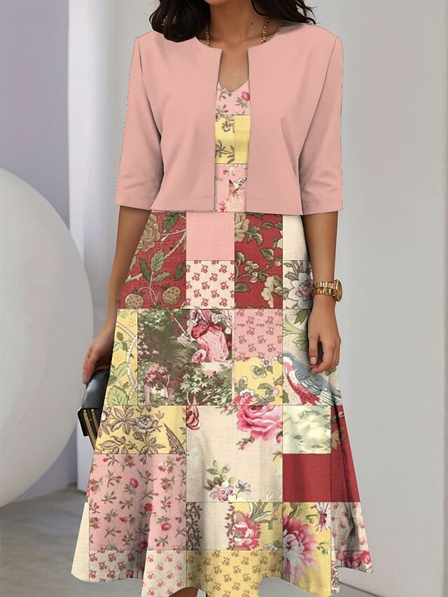 More information about Women's Dress Set A Line Dress Midi Dress Elegant Casual Floral Graphic Patchwork Print Midi Dress Half Sleeve Crew Neck Vacation Date Pink Blue Purple Summer Spring Regular Fit