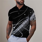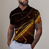 Featuring a bold geometric 3D print, the polo shirt showcases a striking abstract pattern with dynamic lines and light patterns. It includes a classic collared neckline and a button-up placket for a sophisticated touch, perfect for those who enjoy making bold fashion statements.