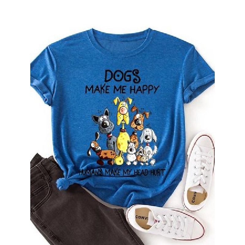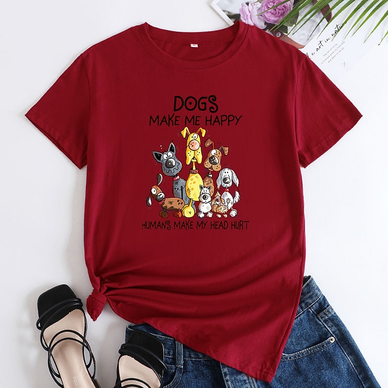 More information about Women's T shirt Tee 100% Cotton Dog Short Sleeve Daily Basic U Neck Regular