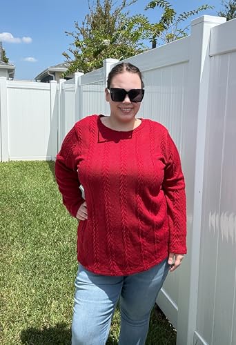 RITERA Plus Size Womens Tops Cable Knit Sweaters Casual Long Sleeve Lightweight Pullover Sweater Tops XL-5XL 4
