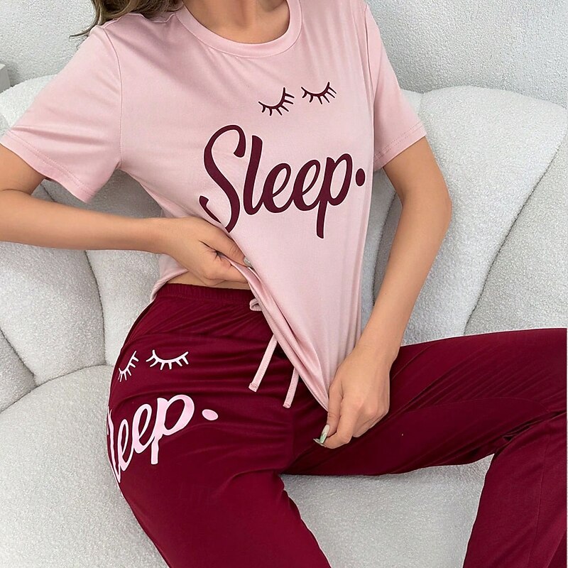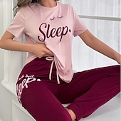 More information about Women's Pajamas Loungewear Pajama Set Simple Casual Comfort Print Letter Tie Knot Pullover Pant Home Daily Short Sleeve Crew Neck Black Pink Blue Rose Red Summer Spring Fall Loose Fit