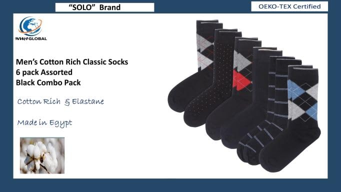 Fabric type: 75% Cotton,20% polyamide, 5% spandexCare instructions: Machine WashOrigin: ImportedPattern: CamouflageMen's Premium Cotton Rich Socks (Pack of 6) | Seamless Dress Socks for men | Menβs Socks (One size) Made in Egypt. comfort stretch, Seamless, Breathable and Ultra Soft.Made from Cotton Rich blend, 75% cotton, 20% polyester, and 5% elastane, these men's dress socks are crafted in Egypt with premium-quality materials. The cotton-rich construction allows for breathable, relaxing wear throughout the day.One Size Fit (Shoe size 7.5-11) Designed for easy care, these dress socks for men are pre-washed for a softer hand-feel, lower shrinkage and are less prone to pilling. Comfort and Breathable. Machine washed.Our men's dress socks are made with durability and longevity in mind. The breathable and absorbent material is gentle on the skin and helps to prevent odors. The elastic, soft, and stretchy design ensures a comfortable fit all day long. Perfect for everyday use. top-grade materials and excellent craftsmanship ensure long-lasting durability.