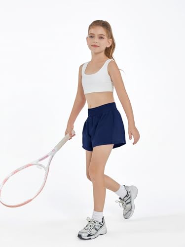Haloumoning Girls Athletic Shorts High Waist Elastic 2 in 1 Running Shorts with Side Pockets 5-14 Years 5
