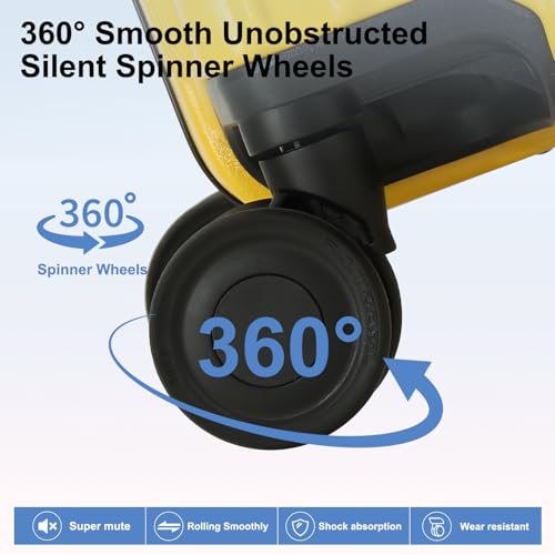 Carry On Luggage with Spinner Wheels, 20 Inch Airline Approved Suitcase, Lightweight ABS+PC Hard Shell Suitcases with Aluminum Frame, Top Opening, TSA Lock (Yellow, 1 PC)