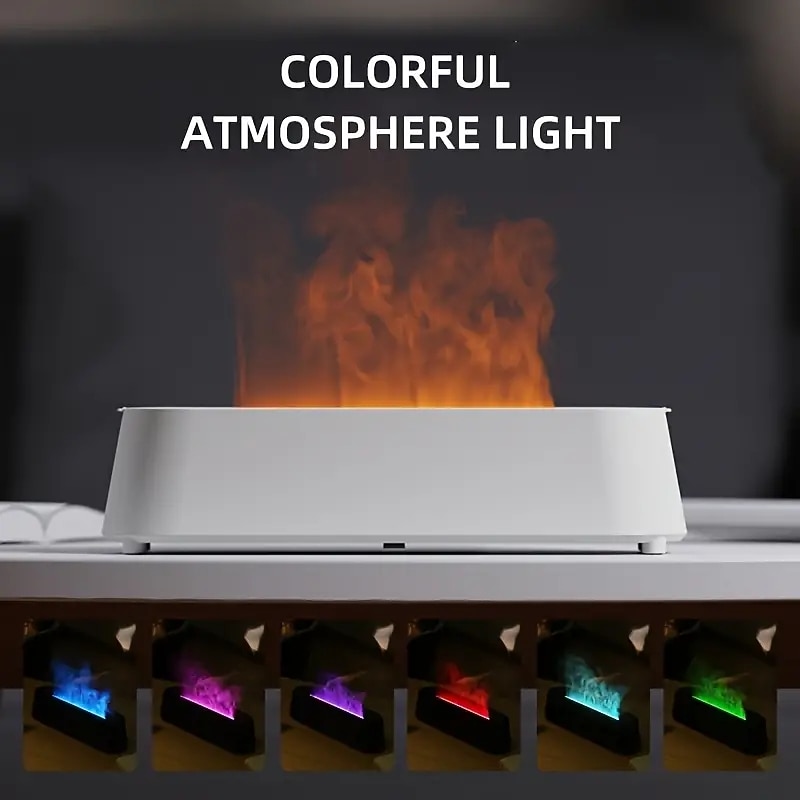 More information about Creative 3D Simulation Flame Air Humidifier Household Colorful Atmosphere Light Intelligent Remote Control Humidifier USB Desktop Silent Large Fog Volume Humidifier Home Decor Room Decor