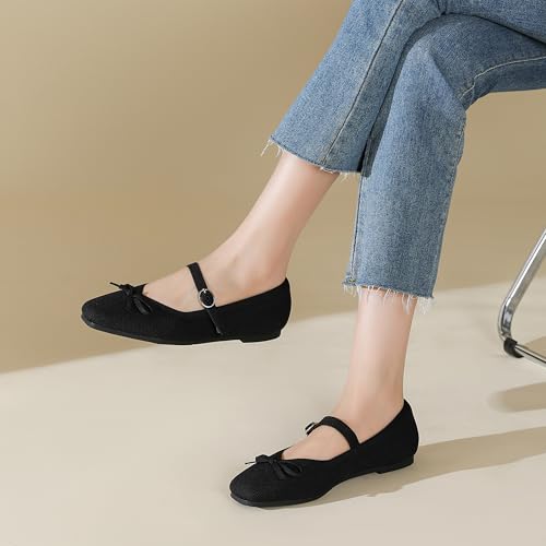 Knit Flats for Women Square Toe Flats Casual Ballet Flats with Ankle Strap,Washable Comfortable Dressy Mary Jane Flat 6