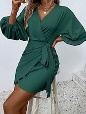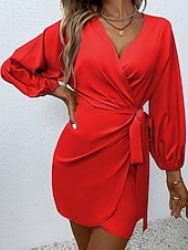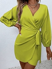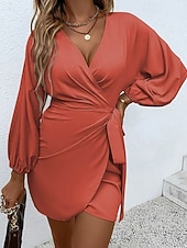 More information about Women's Midi Dress Casual Dress Work Dress Satin Dress Elegant Fashion Modern Outdoor Daily Going out Regular Fit Plain Long Sleeve V Neck Black Yellow Red Orange Spring Autumn