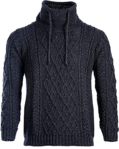 HOT ! Arran Woolen Mills - Men's Merino Wool Sweater with Drawcords Made in Ireland