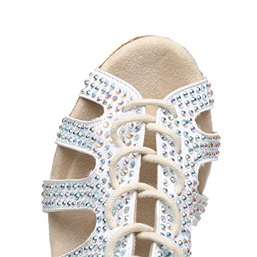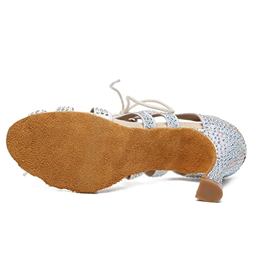 Women's Rhinestone Latin Ballroom Ankle Dance Shoes Satin Lace up Salsa Tango Performance Dancing Boots,Model-L486 6