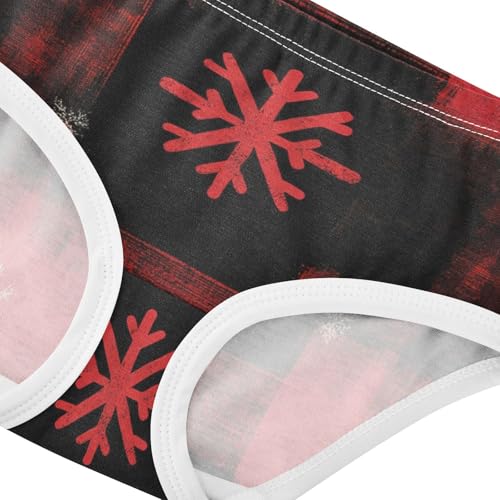 Girls Panties, Christmas Plaid Snowflake Red Black Toddler Panties, Cotton Girls Underwear, 2T–8 Years 1