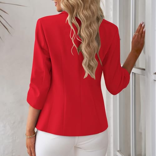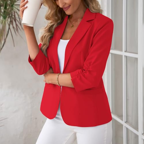HOT ! Blazers for Women Business Casual Lightweight Ruched 3/4 Sleeve Open Front Blazer Work Office Cardigan Suit Jacket