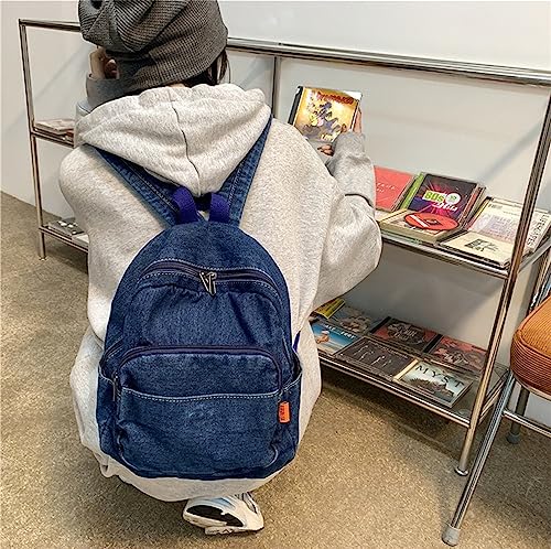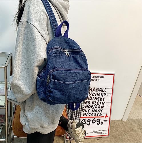 HOT ! JHTPSLR Small Denim Backpack for Women - Vintage Aesthetic Mini Canvas Daypack (Dark Blue)