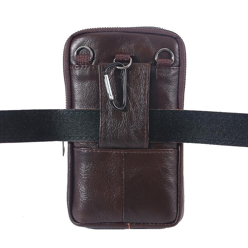 Men's Multi Functional Genuine Leather Shoulder Bag Cell Phone Crossbody Purse Phone Holster Case Leather Belt Waist Pouch Small Messenger Bag 5