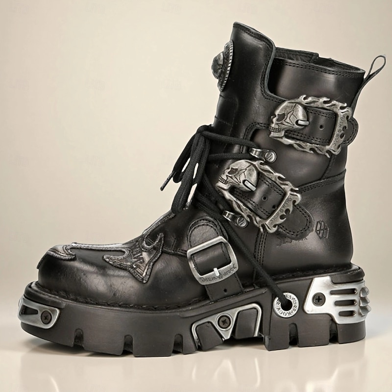 Why Choose Men's Gothic Punk Combat Boots Premium Cowhide Leather with Buckles Metal Accents and Chunky Sole Ideal for Stage Motorcycle and Cosplay Outfits?