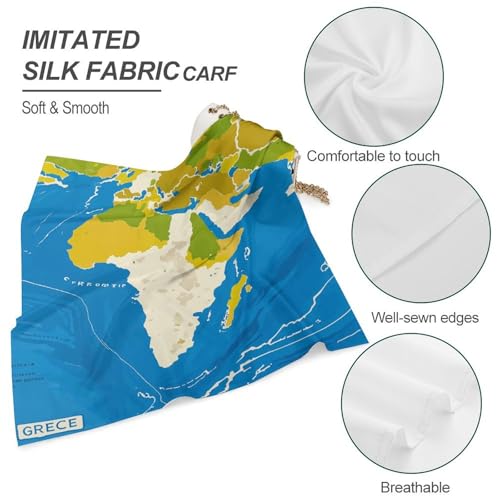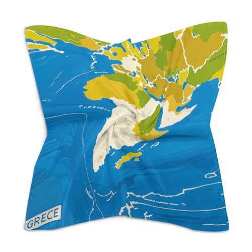 HOT ! Greece Map Print Square Scarf for Women, Silk Like Head Scarf Fashion Accessory, Elegant Lightweight Neckerchief