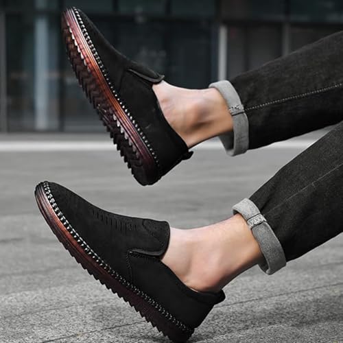 Men's Handmade Leather Loafers Comfortable Cowhide Slip-On Breathable Anti-Slip Summer Driving Shoes 6