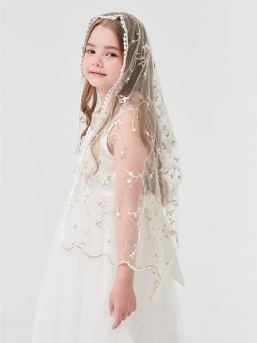 Rectangular Veil for Girls Rose Embroidered Veil Floral Veil for First Communion Girls Flower Veil K1