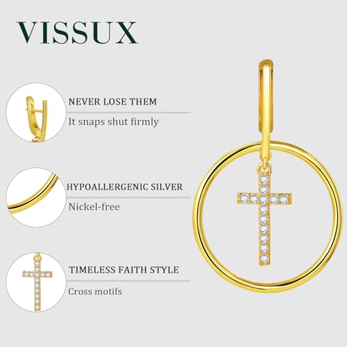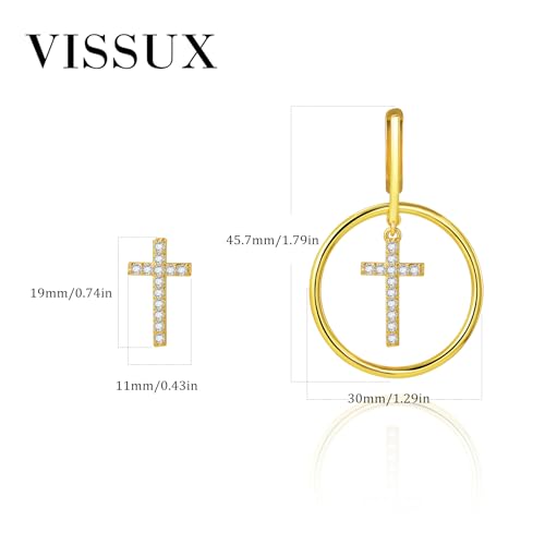 18K Gold Plated Hoop Cross Earrings for Women, Nickel-on the house & Hypoallergenic, Lightweight Rhinestone Sparkly Cross Dangle Earrings, 1.79 Inch
