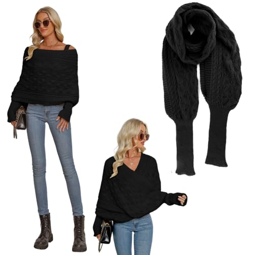 Zcargel Multifunctional Scarf with Sleeves for Women Long Sleeved Knitted Shawl Sweater Shrug Autumn Winter Warm Crochet Wrap 1