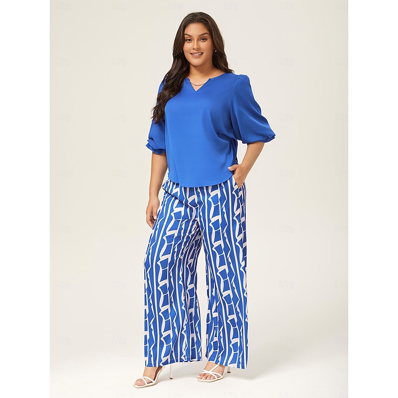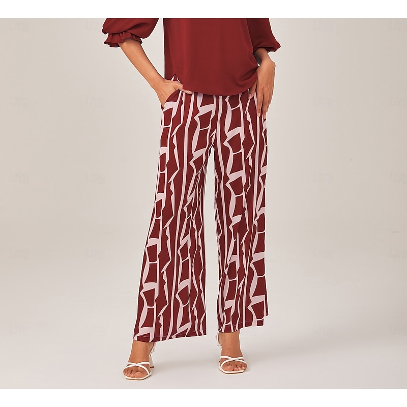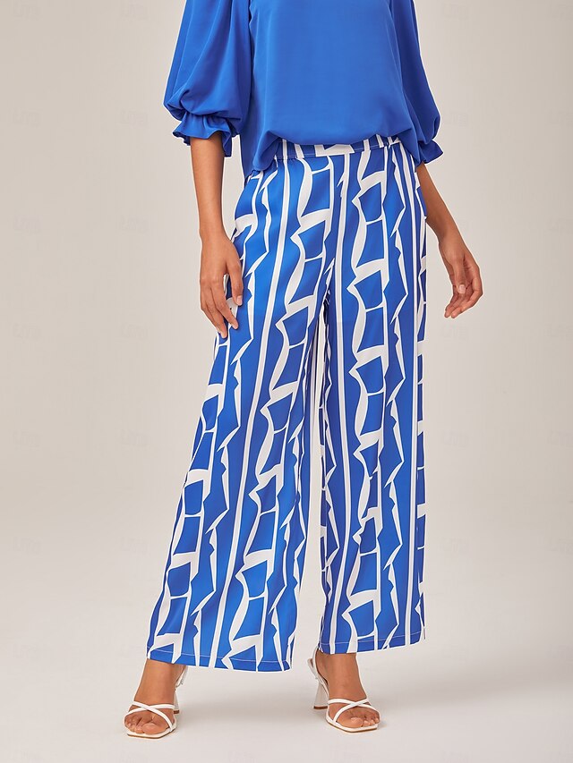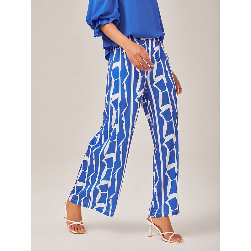 $72.99 - Ruched Waist Blue Printed Straight-Leg Pants 2025. Shop for cheap Pants online? Buy at lightinthebox.com on sale today!