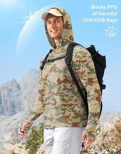 Men's Sun Protection Hoodie Shirt UPF 50+ Long Sleeve Fishing Rash Guard UV SPF Summer Lightweight Hiking Shirt for Men