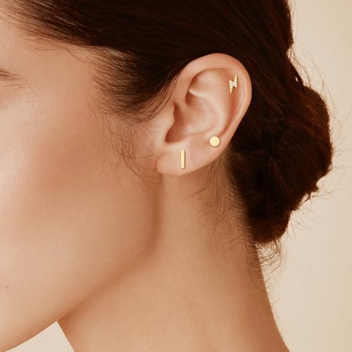 JIAYIQI 925 Sterling Silver Stud Earrings Simple Mini Bar Circle Dot Heart Star Lightning Bolt Stud Earrings 14K Gold Plated Cartilage Earrings Studs for Women Men Hypoallergenic Jewelry 4