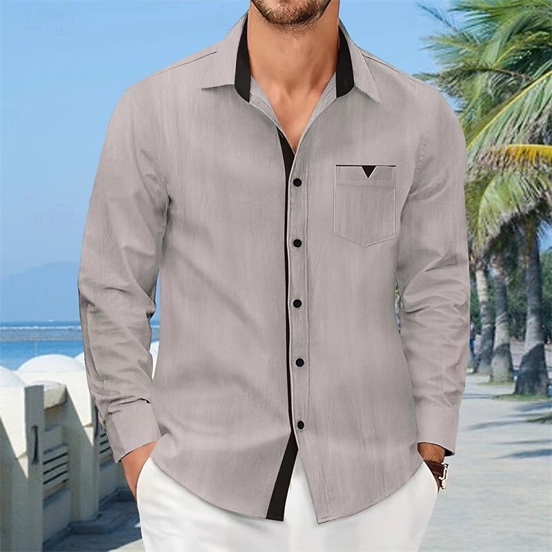 More information about Men's Shirt Summer Shirt Casual Shirt Beach Shirt Button Up Shirt Black White Sky Blue khaki Gray Long Sleeve Plain Lapel Vacation Hawaiian Pocket Clothing Apparel 100% Cotton Fashion Casual