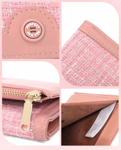 Star Tok Women's Clutch Wallet, PU Leather Woven Print Credit Card Holder, Tri-fold Zipper Coin Purse with ID Window (Beige) 5