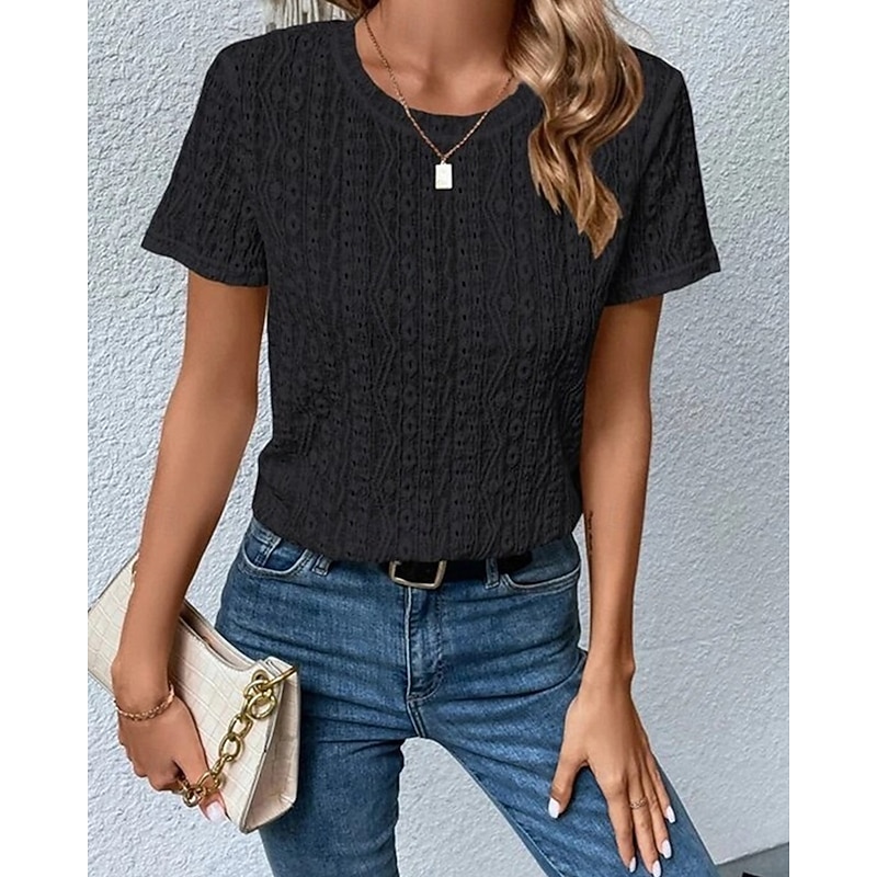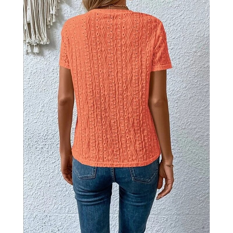 This Women's Blouse Eyelet top Lace Tops Plain Daily chic Basic Short Sleeve Crew Neck Regular Tops Work Daily Holiday Hollow Out Black White Orange Summer Spring combines elegant design with practical functionality. Every detail has been carefully considered to ensure you get the best possible experience. The premium construction means this product will serve you well for years to come.