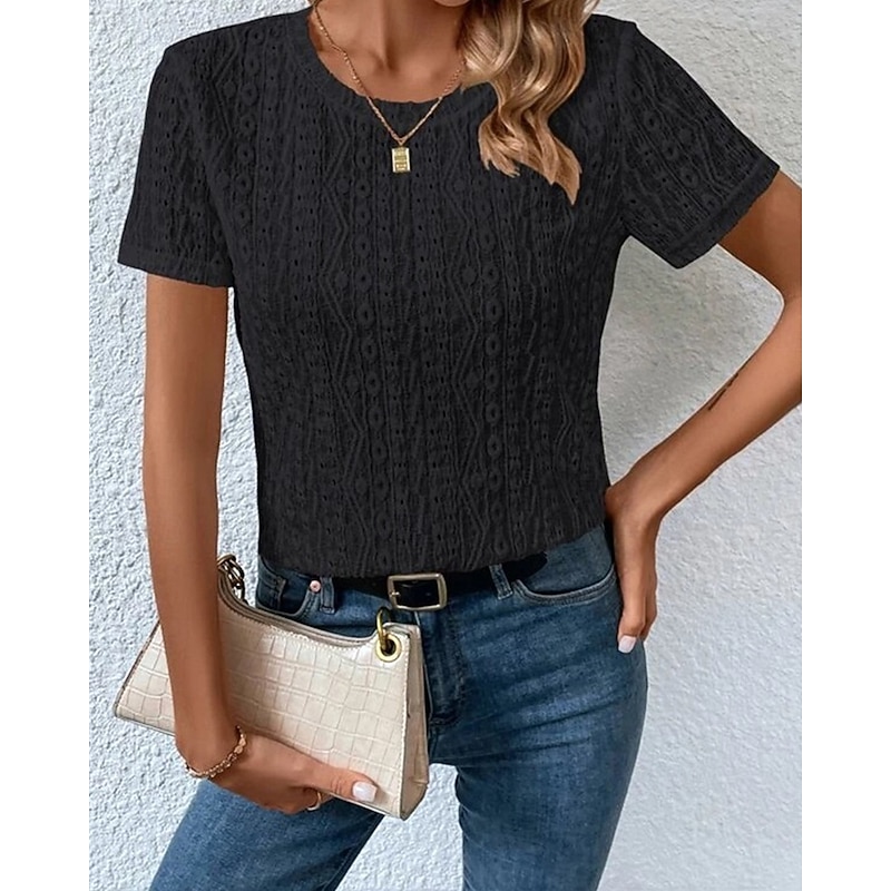 Why Choose Women's Blouse Eyelet top Lace Tops Plain Daily sleek Basic Short Sleeve Crew Neck Regular Tops Work Daily Holiday Hollow Out Black White Orange Summer Spring?