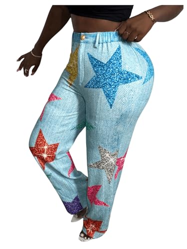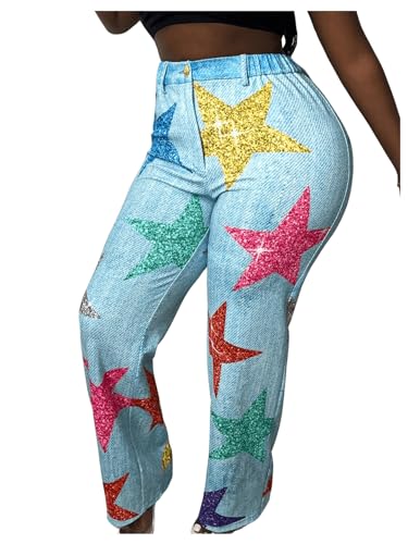 Floerns Women's High Waist Denim Straight Leg Clubwear Star Print Fake Jeans 6