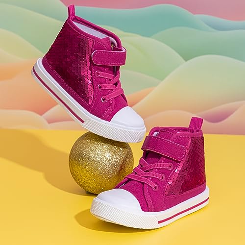 Kannior Toddler Unisex Classic Sequins Canvas Sneaker High Top Slip On Denim Glitter Casual Shoe Sparkle Color Changing Flip Walking Shoes 1