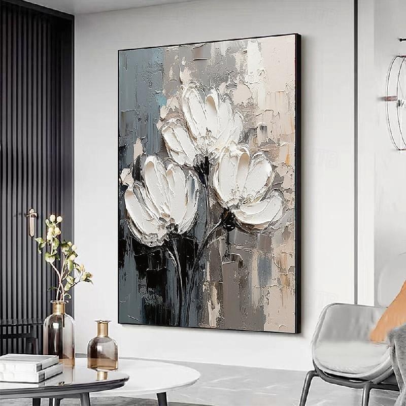 $108.99 - Flower oil painting handmade palette knife white Paintings on canvas art wall art Pictures for Home Decor hand painted quadro cuadros abstractos painting 2025. Shop for cheap Floral/Botanical Paintings online? Buy at lightinthebox.com on sale today!