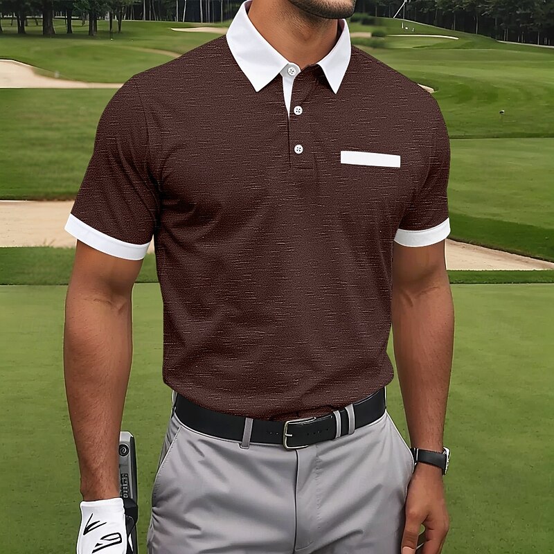 Men's Sports Polo Shirts Golf Shirt Sports Active Lapel Short Sleeve Fashion Basic Color Block Patchwork Summer Regular Fit Black Burgundy Navy Blue Dark Grey Sports Polo Shirts 5