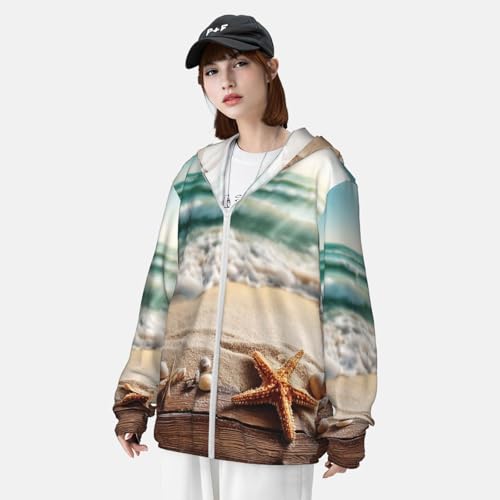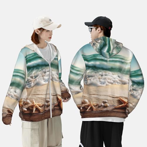 Fabric type: 100% PolyesterClosure type: ZipperNeck style: Hooded NeckFit type: RegularUV Protection UPF 50: Crafted from polyester quick-drying rated fabric block the sun, this UPF 50 sun protection hoodie is lightweight, breathable, and offers a soft touch. It provides wind resistance, UV protection, ensuring durability and long-lasting comfort.Jackets Dimensions: We're confident this long sleeve jacket is some of the best you'll find,there are 6 sizes in total: s, m, l, xl, xxl, 3xl; rich pattern design, covers various themes,comfortable version, follows the fashion trend, making you look more attractive and trendy.Unisex Cooling Hoodie Shirts: Our sports jacket zipper and hooded design, easy to wear and take off, fashion goes with everything. Elastic band design at the hem and cuffs, one inner pocket on the left. Hiking sun shirt fits easily in your luggage, backpack or tote bag for on-the-go convenience.Sun Protection: These Ocean Beach Theme mens long sleeve fishing shirts with a hoodie can protect your neck from sun. UPF 50+ sunscreen fabric, ideal for outdoor activities, such as running, hiking, swimming, fishing and trainingHooded Sun Shirts: Ideal for men and women alike, this Ocean Beach Theme sport hoodie suits various outdoor activities, comfortable fit, can be paired with a variety of bottoms. A thoughtful gift choice for family, friends, or colleagues who love active lifestyles. Perfect for everyday use. top-grade materials and excellent craftsmanship ensure long-lasting durability.