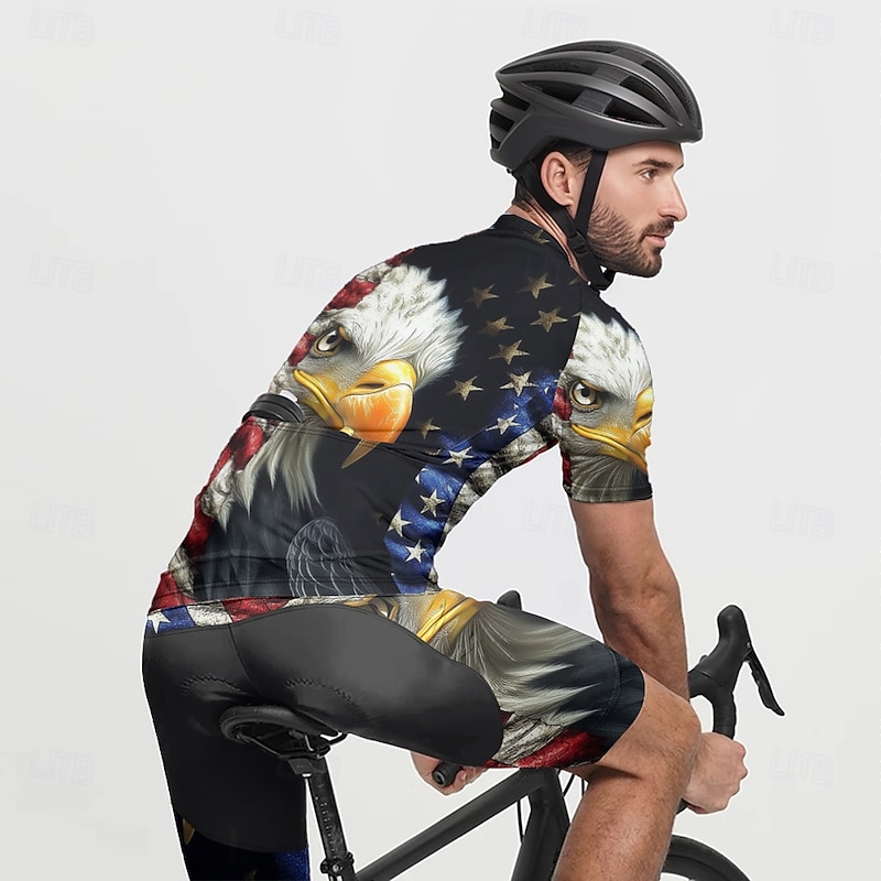 Men's Cycling Jersey Eagle Short Sleeve Bike Tee Tshirt Jersey with 3 Rear Pockets Mountain Bike MTB Quick Dry Anatomic Design Wicking Breathable Sports Wine Red Black Yellow Clothing Apparel 36