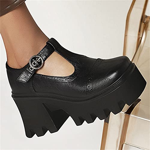 SHEMEE Women Platform Chunky Heel Mary Jane Pumps Vintage Square Toe Buckle Block High Heeled Gothic Shoes