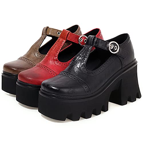 Sole material: RubberPlatform height: 1.57Outer material: SyntheticClosure type: Buckle[Item Type]: Retro square toe chunky high heels womens pumps t strap platform goth dress shoes[Main Material]: Synthetic upper,non-slip rubber sole[Heel Height]: Heel height approximately 3.15 Platform height approximately 1.57[Item Features]: Women's chunky high heel pumps goth punk platform shoes, unique and novel t-strap buckle design easy slip on and off. Runs true to size, keep you comfy in all days.Available in black brown and red 3 colors.[Occasion]: Women goth style chunky heel platform pumps perfect for masquerade, exhibition, walk, shopping, work, office, party, wedding, travel, festival, New Year, Christmas. This womens shoes will make the perfect and most trendy gift for all your loved ones and for every occasion. Perfect for everyday use. top-grade materials and excellent craftsmanship ensure long-lasting durability.